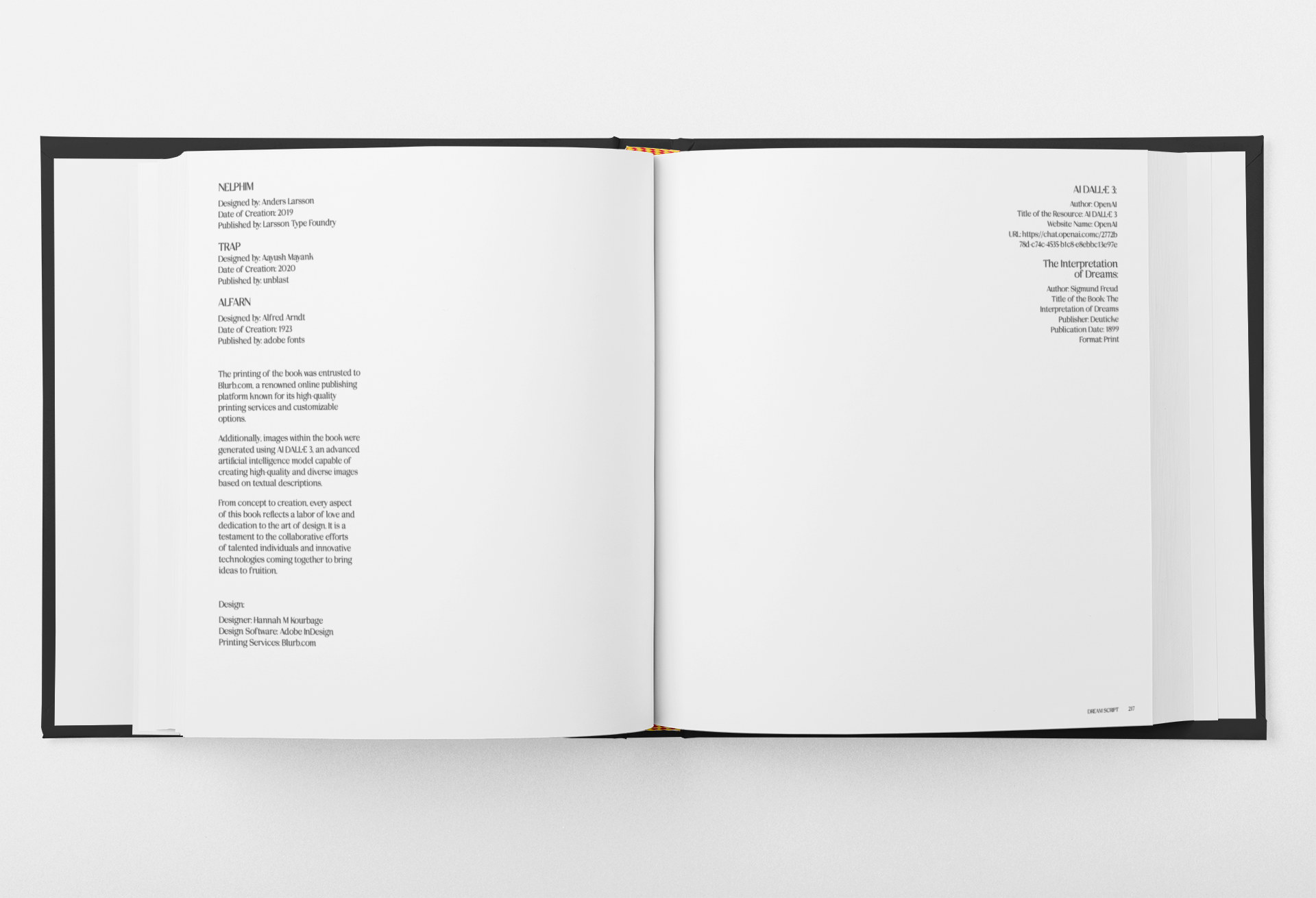 Dream Script is an innovative book project that explores the fascinating intersections of psychology, art, and technology through the lens of the human subconscious. This captivating narrative invites readers to embark on a unique journey into the dreamscape, presenting a collection of dreams sourced from diverse individuals. These dreams, transformed into mesmerizing visual artworks using AI technology, offer a vivid glimpse into the complex landscapes of the mind. The book unfolds in three parts, beginning with an introduction to the psychology of dreams, grounded in the seminal theories of Sigmund Freud, which illuminates how dreams act as reflections of our deepest unconscious thoughts and desires. The narrative then transitions into a discussion on the transformation of these ephemeral dream fragments into concrete visual artworks, highlighting the role of AI in bridging human creativity and technological innovation. The final section of the book presents a comprehensive dream dictionary, providing readers with tools to interpret their own dreams and gain insights into their personal subconscious narratives. Dream Script weaves together theory, art, and practical application to create a multi-dimensional exploration of dreams, making it a valuable resource for anyone interested in the insights that the subconscious mind can offer.